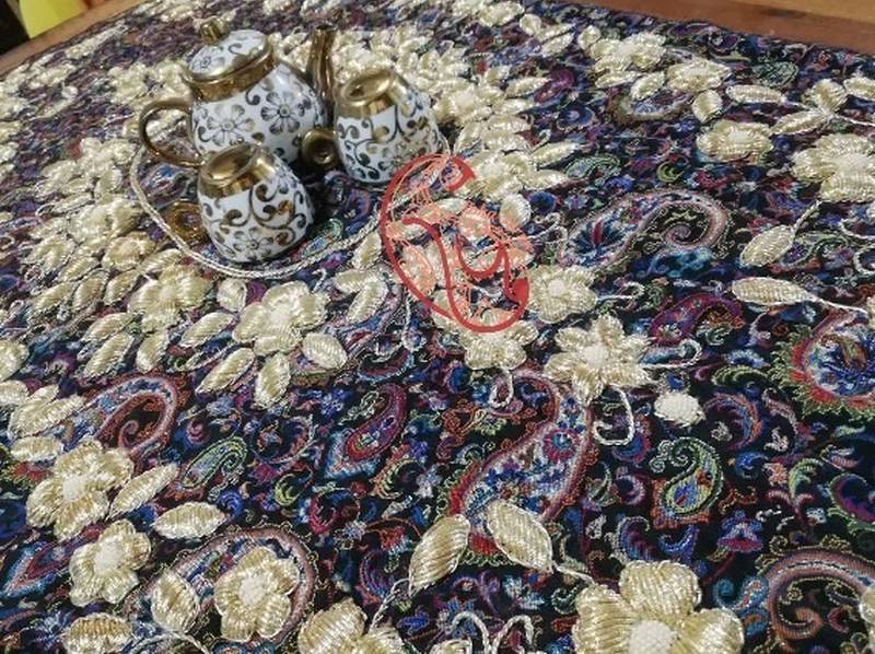 رومیزی: رومیزیهای ترمه به عنوان یک عنصر تزئینی و لوکس بر روی میز ناهارخوری، عسلی و سایر میزها استفاده میشوند.