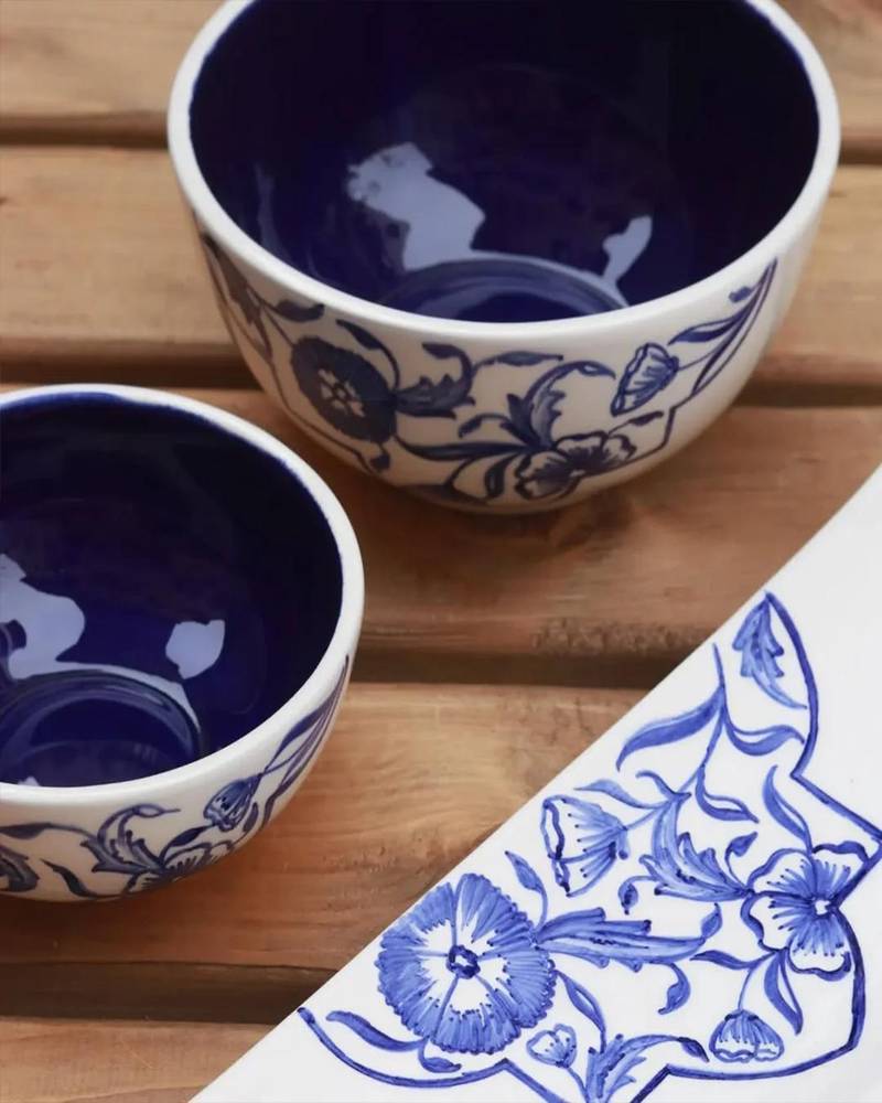 💙 ست ظروف سرامیکی قلم آبی – ظرافت نقاشی دست در رنگی آرام