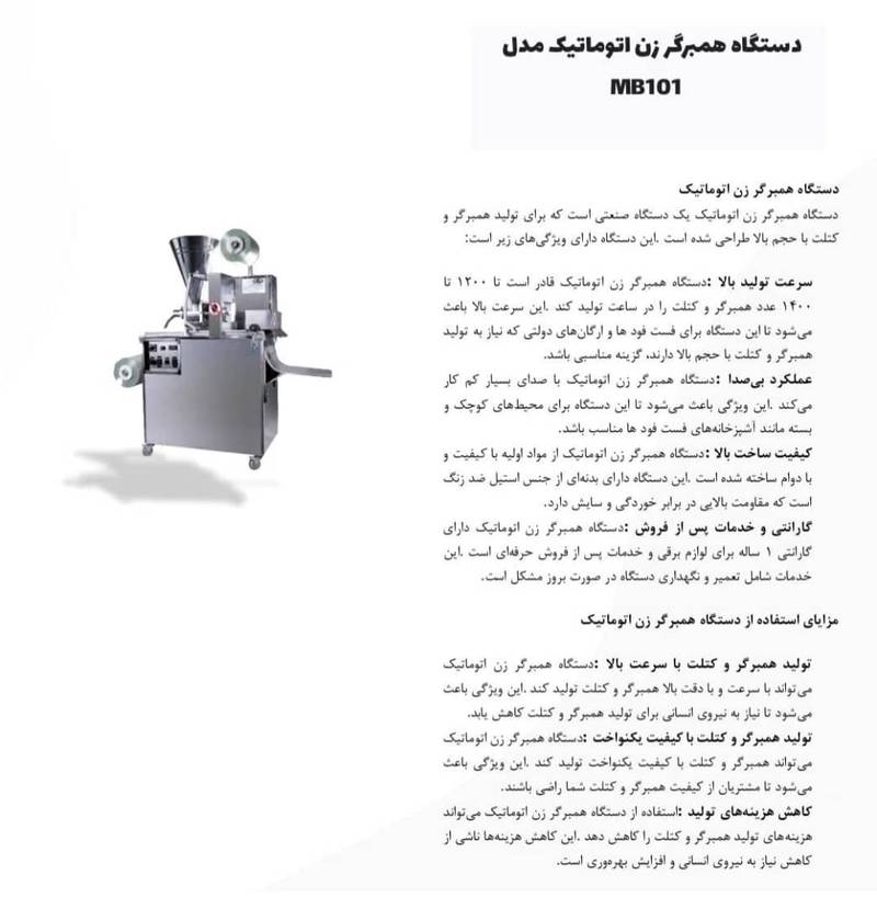 دستگاه برگرزن اتومات تمام استیل زد زنگ با ظرفیت ۱۲۰۰ عدد در ساعت