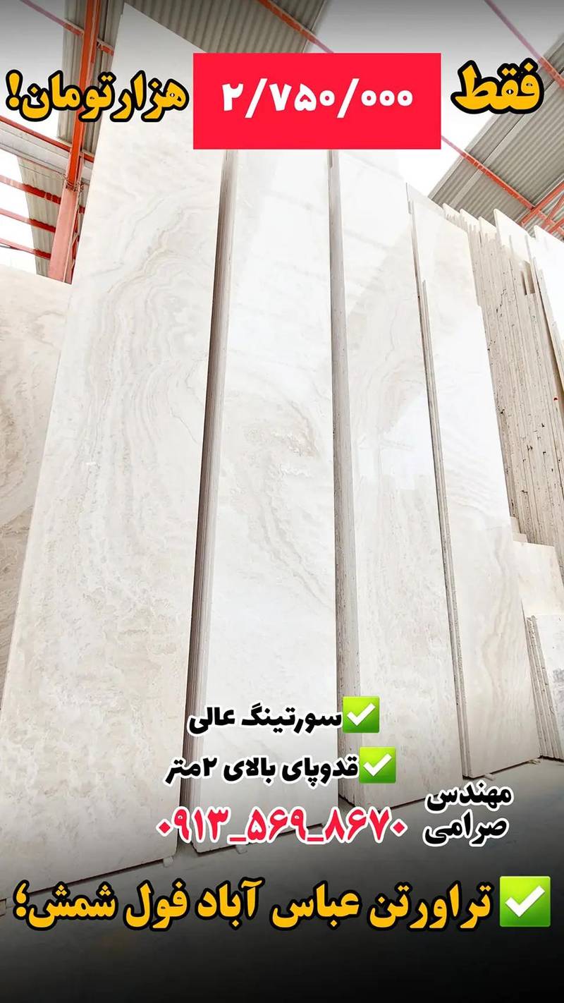 ارزانسرای سنگ تک در اصفهان با افتخار یکی از باکیفیتترین محصولات خود را با قیمتی رقابتی به مشتریان عرضه میکند. سنگ تراورتن عباس آباد فول شمش با سورتینگ عالی و ارتفاعی بالای ۲ متر، گزینهای ایدهآل برای پروژههای لوکس و نماهای خاص است. قیمت هر متر از این سنگ تنها ۲,۷۵۰,۰۰۰ تومان بوده و فروش به صورت مستقیم از کارخانه و تحت نظارت مهندس صرامی انجام میشود.