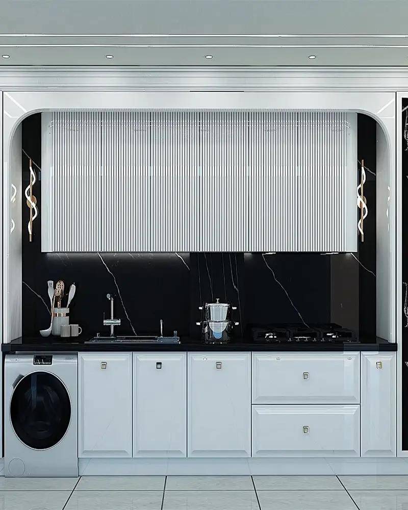 مزایای کلیدی این محصول شامل طراحی منحصر به فرد، کیفیت ساخت بالا، استفاده از مواد اولیه مرغوب و دوام قابل توجه است که رضایت کامل مشتریان را به همراه داشته است. این آشپزخانه نمونه بارزی از تلفیق هنر، کیفیت و عملکرد است.