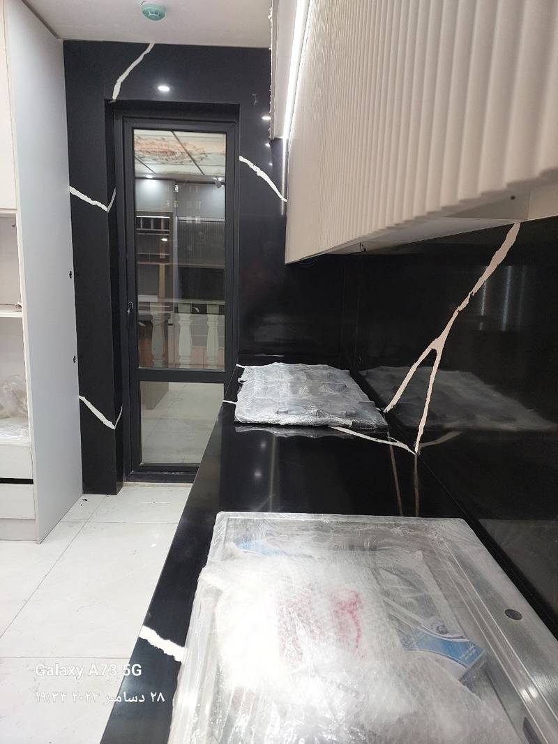 اجرای صفحات کوارتز مشکی رگه سفید توتم با بین کابینتی برای آقای بهمنی
