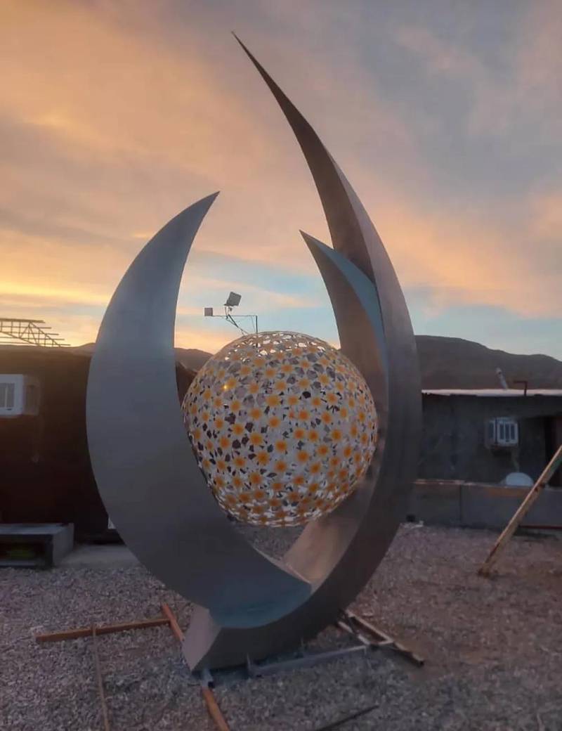 این المان شهری از ورق فلزی با ضخامت 2 میلیمتر ساخته شده و با ارتفاع 5 متری، به عنوان یک نماد بصری قوی در فضاهای شهری خودنمایی می کند. بهرهگیری از متریال باکیفیت و فرآیند تولید استاندارد، استحکام و دوام بالایی را در برابر شرایط مختلف آب و هوایی تضمین می کند.