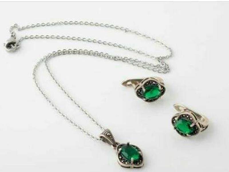 نیم ست نقره ای ایتالیایی مارکازیت ۹۲۵ عیار با نگین زمرد روکش طلا سفید در گالری زیورآلات ترمه در شیراز موجود می باشد و قابلیت ارسال به سراسر کشور را دارد.