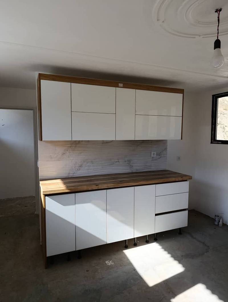کابینت، کمد و جاکفشی با ترکیبی جذاب از چوب گردویی مات و هایگلس سفید براق ایزوفام
