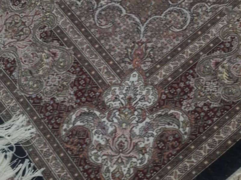 فرش جفت ۶ متری ۴۰ رج با نخ مرینوس(نخ۵۰رج) طرح موج مهر حاشیه کتیبه با کیفیت استثنائی.