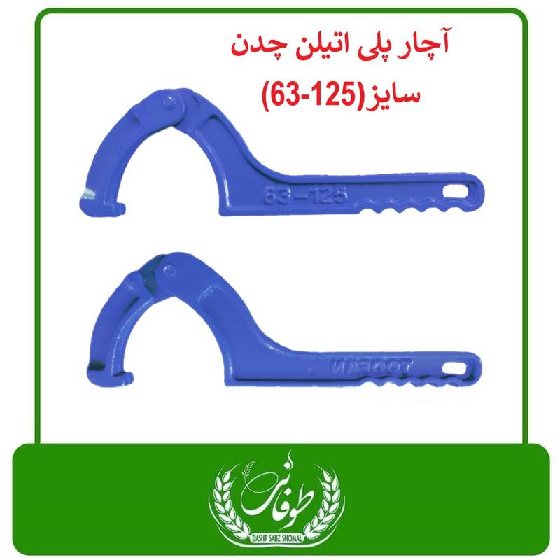آچار پلی اتیلن چدن(سایز 125-63) ، جهت باز و بسته نمودن انواع اتصالات پیچی پلی اتیلن می باشد،