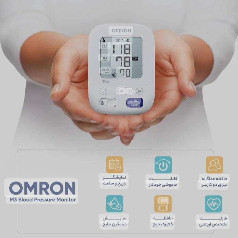 فشارسنج امرون مدل M3 محصول کشور ژاپن و تحت لیسانس ویتنام بوده و کیفیت بسیار بالایی دارد. این دستگاه فشارخون عملکرد بسیار دقیقی داشته که میزان فشار خون و ضربان قلب افراد بزرگسال را نمایش می دهد. دستگاه قابلیت نگهداری 60 عدد فشار خون اندازه گیری شده برای دو کاربر را در حافظه خود دارد که توسط کلید کشویی روی بدنه قابل انتخاب است تا بتوان سیر کاهش یا افزایش فشار خون را بررسی نمود، همچنین می توان میانگین فشار خون اندازه گیری شده را نیز مشاهده نمود. درضمن جهت حفاظت و سهولت در جابجایی دستگاه یک کیف نگهداری همراه با این مجموعه ارائه شده است.