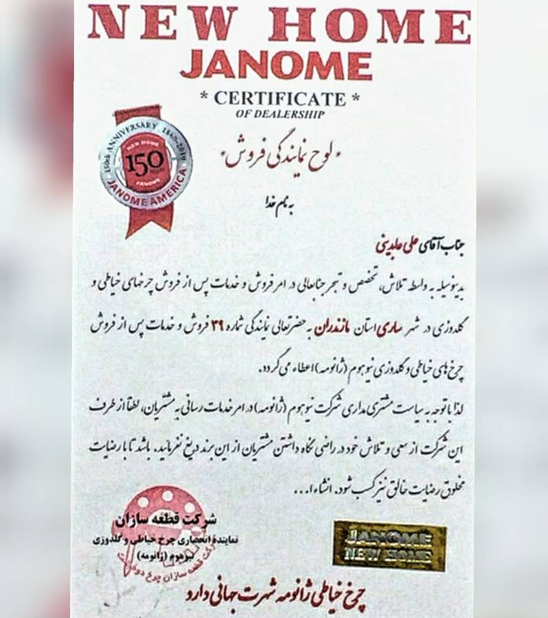 نمایندگی چرخ خیاطی جک در ساری مازندران نمایندگی چرخ خیاطی گلدوزی ژانومه در ساری،مازندران نمایندگی اتو سیلتر:ترک و ایرانی در ساری،مازندران نمایندگی چرخ خیاطی صنعتی تیپیکال در ساری،مازندران نمایندگی چرخ خیاطی صنعتی زوجی در ساری،مازندران نمایندگی اتو صنعتی باتیستلا ایتالیا در ساری،مازندران نمایندگی قیچی برقی دایانگ‌و‌سانتیان در ساری،مازندران. تامین و پخش لوازم یدکی و جانبی انواع ماشین آلات دوخت،برش و اتو های صنعتی لوازمات اورجینال و شرکتی در ساری،مازندران + تعمیرات تخصصی انواع ماشین آلات دوخت : راسته،سردوز،دکمه صنعتی،مادگی ۷۸۲ و ۱۷۹۰،الیک،۲پایه،۲ماکو‌۲سوزن،کابویی و ...تمامی ماشین آلات تخصصی تعمیرات پزیرفته میشود.
