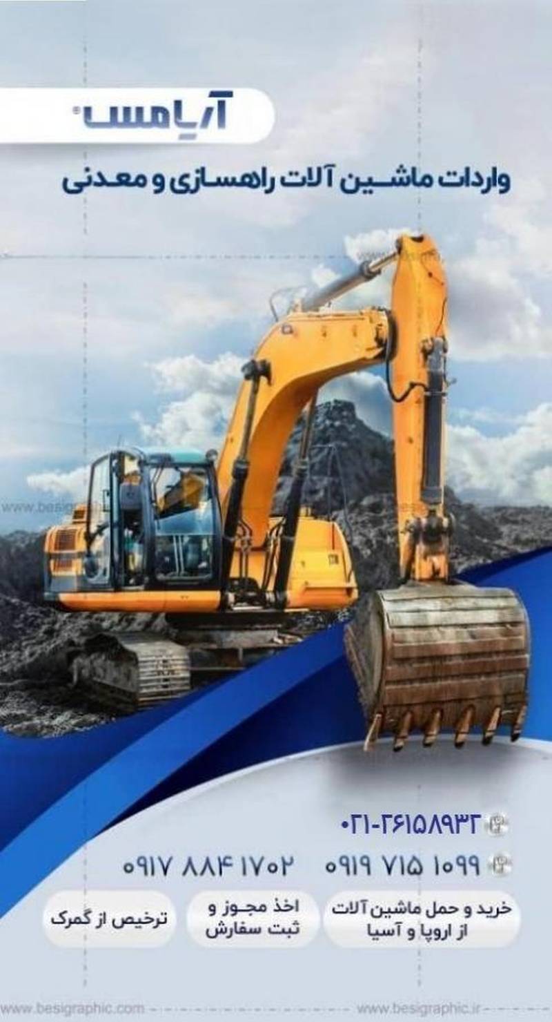 با 20 سال سابقه و واردات بیش از صد دستگاه بیل مکانیکی و لودر، آریامس آماده همکاری با فعالان حوزه راهسازی و معادن سراسر کشور است.