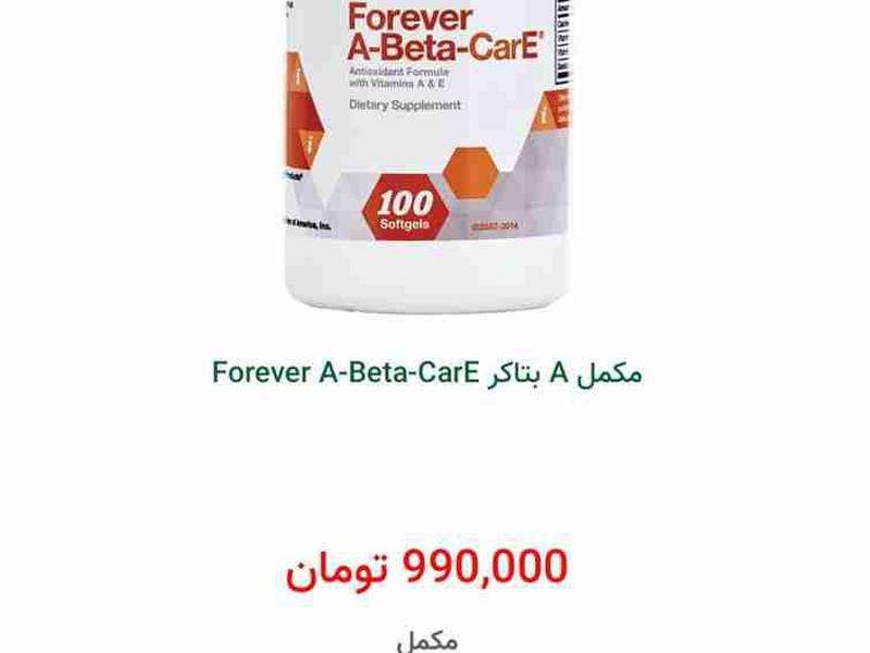 مکمل ( A بتاکر Forever A-Beta-CarE ) حاوی بتاکاروتن و موثر در ازبین بردن رادیکال های آزاد و موثر در تقویت بینایی، رشد استخوان ها و سلامت دستگاه گوارشی و تنفسی است.