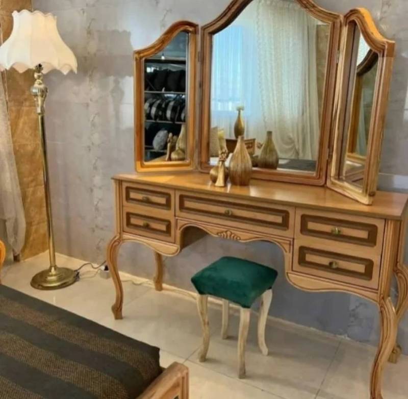 - میز آرایش مجهز به آینه و کشوهای کاربردی برای نظمدهی لوازم آرایشی