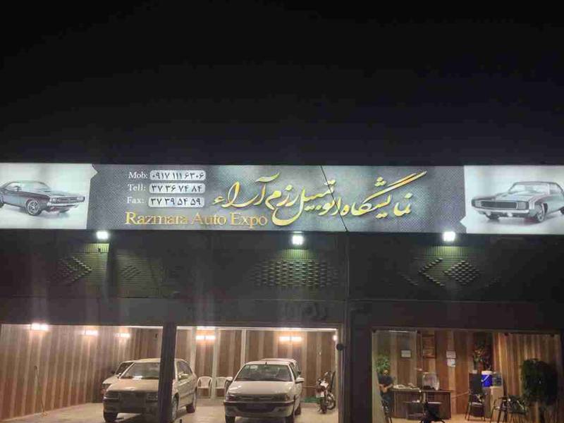 اجراي نمايشگاه اتومبيل رزم آرا تابلوساز ۱۱۰ شیراز