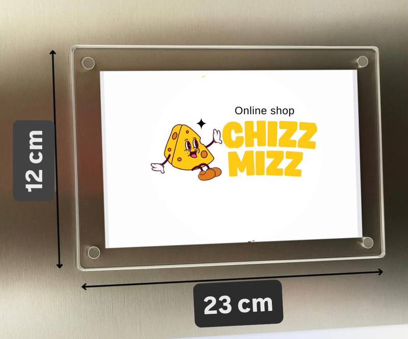 قاب عکس مگنتی پلکسی در سایزهای متنوعی شامل ۵ در ۷ سانتیمتر، ۸ در ۱۱ سانتیمتر، ۱۱ در ۱۱ سانتیمتر، ۱۱ در ۱۶ سانتیمتر، ۱۴ در ۱۹ سانتیمتر و ۱۲ در ۲۳ سانتیمتر ارائه میشود تا برای نیازها و سلیقههای مختلف گزینه مناسبی در دسترس باشد.