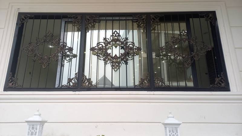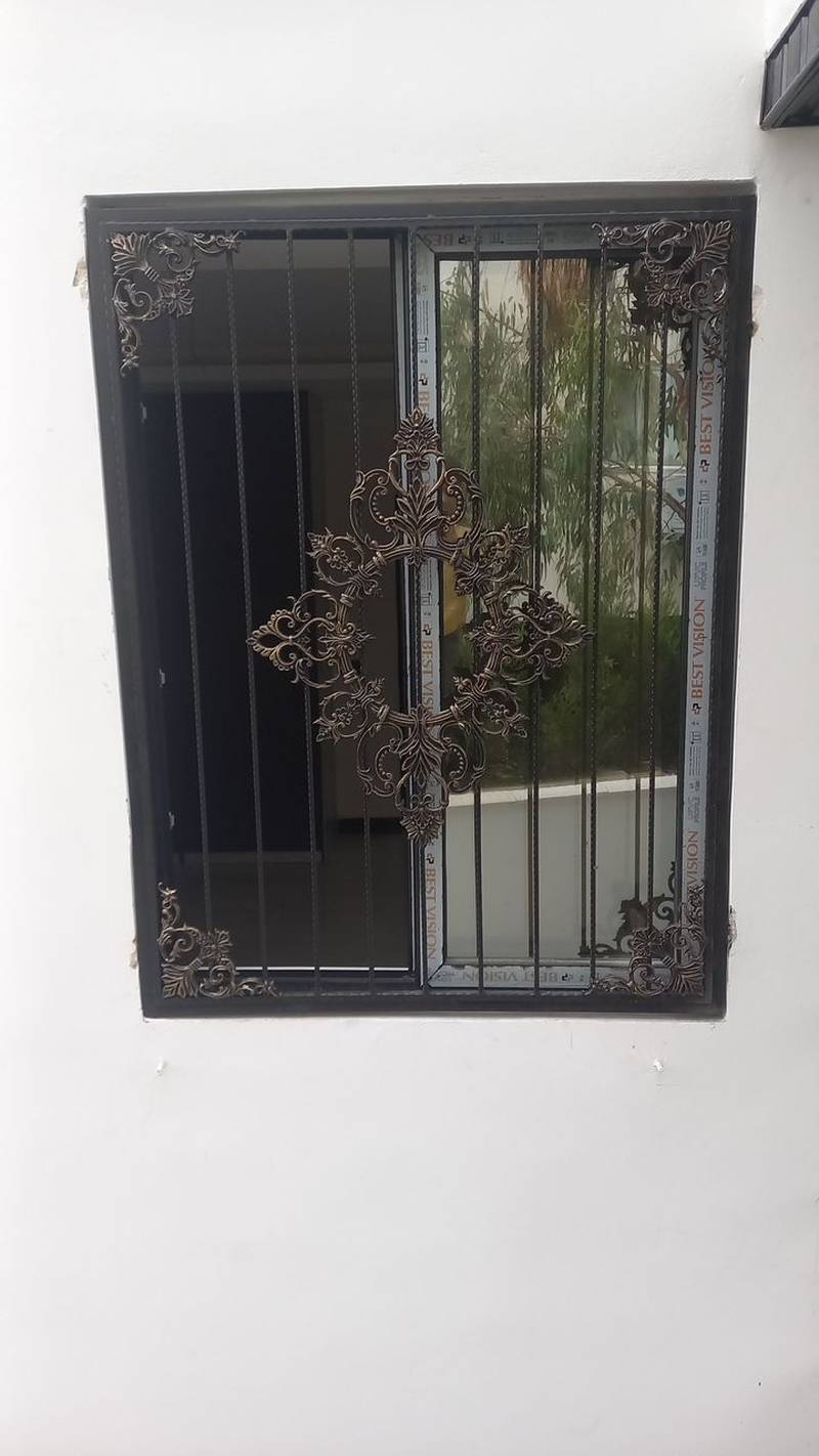 اجرای درب دو لنگه و حفاظ پنجره مدل فرفورژه برای آقای لاشکی واقع در هلستان (نوشهر)