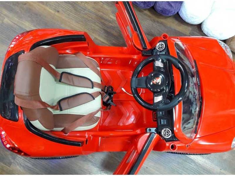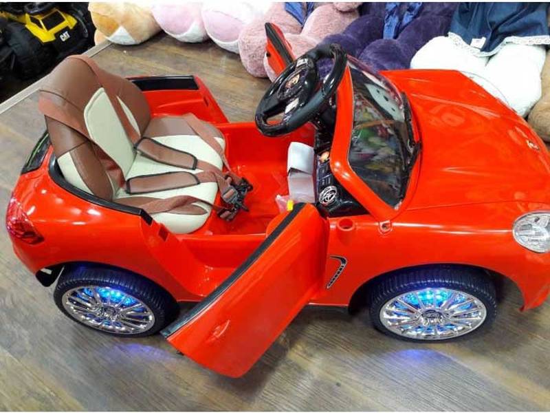 ماشین شارژی پورشه صندلی چرم سیستم صوتی کنترل از راه دور توسط والدین ۲موتوره و باطری بزرگ سیستم چمدانی چرخ ها داری چراغ رنگی