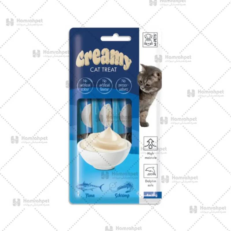 بستنی گربه ام پت با طعم ماهی تن و میگو M-Pets Creamy Treat With Tuna & Shrimp بسته 4 عددی