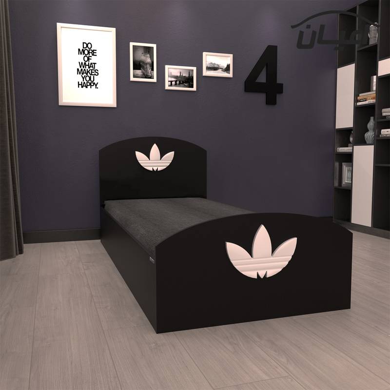 تخت خواب یک نفره اعیان طرح آدیداس.جنس ملامینه شرکتی.جنس لوگو آدیداس وکیوم می باشد در رنگبندی متنوع و در ابعاد استاندارد.کالا فاقد تشک می باشد جهت تهیه تشک،سایز استاندارد 200×90 سانت مناسب است.جنس کفی تخت نئوپان خام و به صورت دوتکه بوده که همراه با چند جفت فاق و زبانه به عنوان پایه در بسته بندی جداگانه ارسال می شود.این محصول به صورت مونتاژ نشده در سه بسته بندی همراه با بروشور راهنمای نصب با لوگو و برند اعیان ارسال می شود. این کالا در رنگ های سفید/مشکی/قهوه ای/قهوه ای روشن/قهوه ای تیره(ونگه) و حالت چند رنگ که مشابه تصاویر آلبوم محصول تولید می شود .