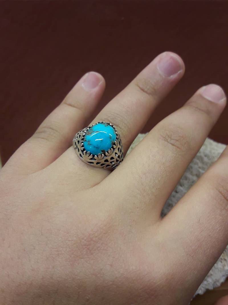فروش انگشتر فیروزه و نقره مردانه با نگین فیروزه درجه۱ اصل نیشابوری.