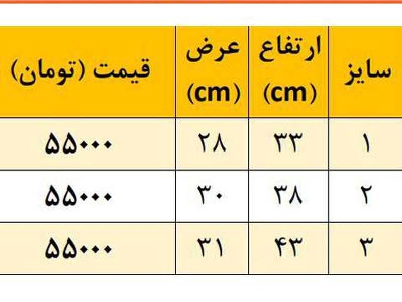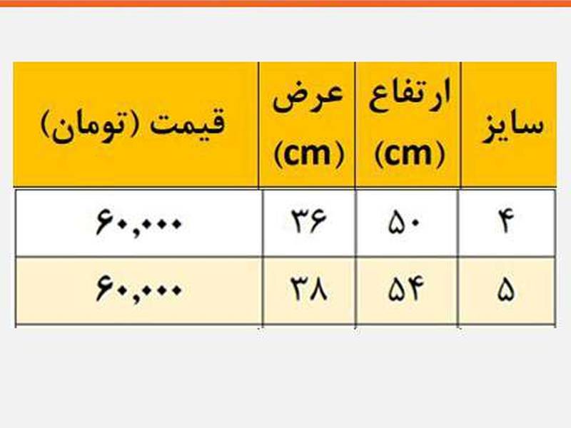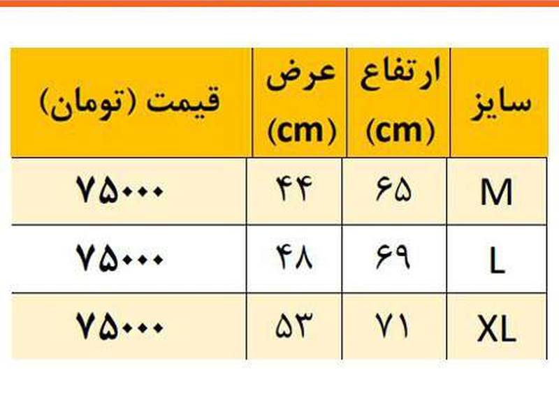 راهنمای سایز و قیمت دقیق در عکس های محصول قابل مشاهده است.