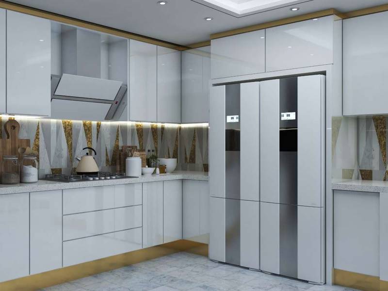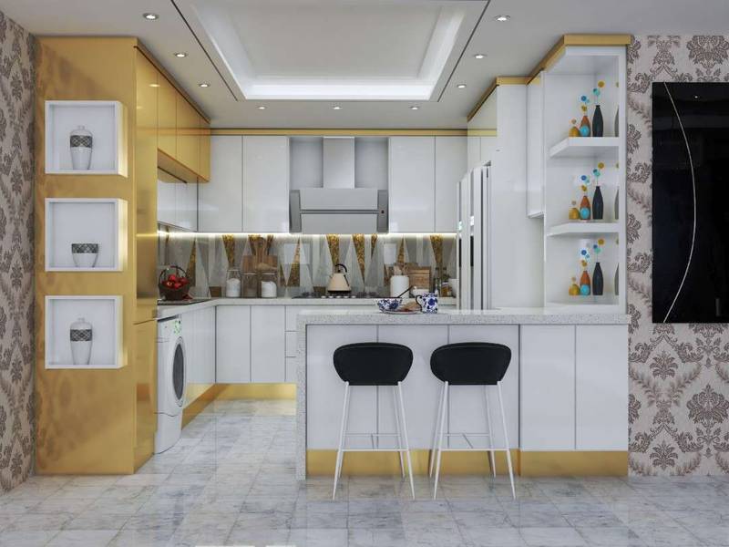 کابینت پله ای های گلاس سفید طلایی برند یلدیز