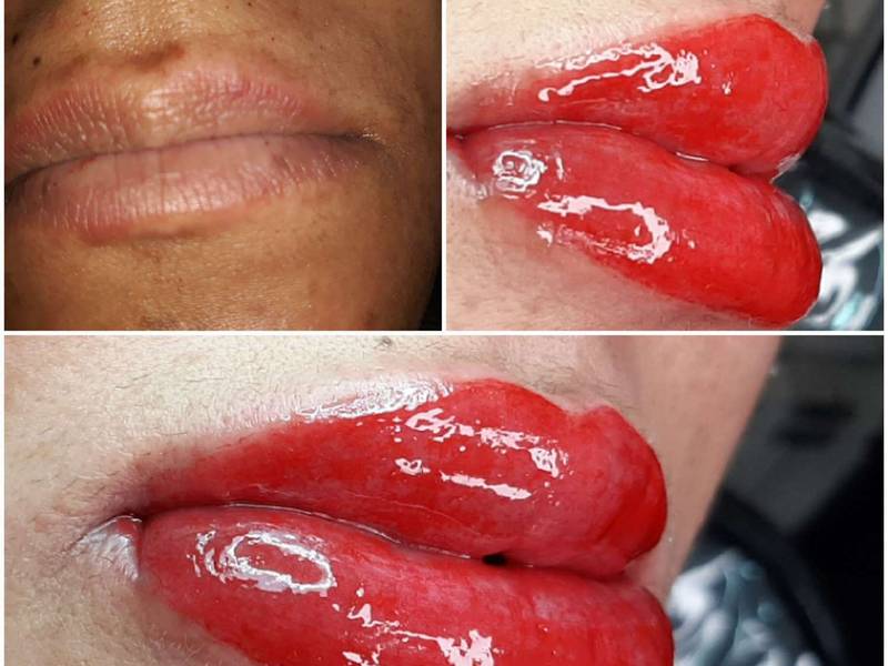 اجرا شیدینگ لب با بهترین بی حسی و مرغوب ترین رنگ ها در آکادمی آرایش دائم حوریه قرطاسی در گیلان.