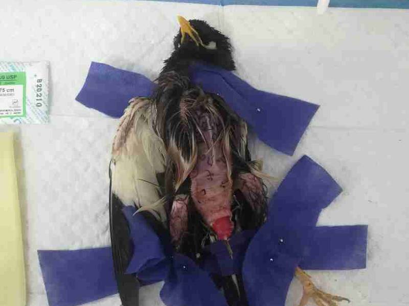 مرغ مینایی دچار پرولپس شده بود، مراجعه کرد به کلینیک، روده ها رو داخل فرستادیم و کلواک رو بخیه زدیم با پیگیری های پس از جراحی از صاحب محترمش، مطلع شدیم که حالش خوبه و دیگه مشکلی در دفع و بیرون زدگی ندارد