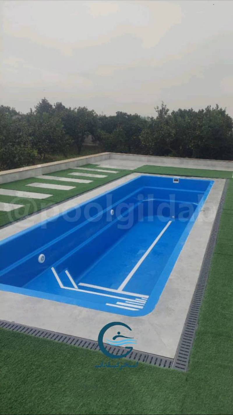 استخر فایبرگلاس با طراحی مدرن و کیفیت بالا، در رنگبندی و سایزبندی متنوع، مناسب برای استفاده در ویلاها، باغها و مجموعههای تفریحی.