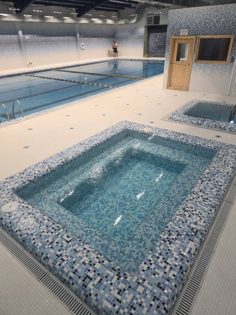 نمای داخلی جکوزی: جکوزی با جتهای ماساژ ملایم و فضای دایرهای طراحیشده برای استراحت و آرامش کامل بدن. طراحی زیبا و مدرن این بخش، تجربهای لوکس و راحت را در کنار آب درمانی و تسکین تنشهای عضلانی فراهم میکند.