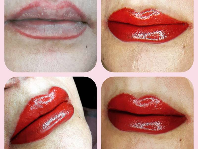 حجیم سازی لب روی لبی که خط لب تاتو شده