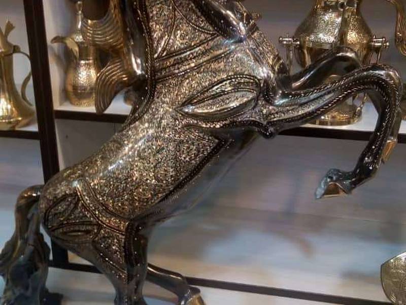 مجسمه برنجی اسب ایستاده به رنگ برنزی محصولی زیبا و جذاب برای تزئین فضای خانه است. این مجسمه در ابعاد مختلف از جنس برنج و با کیفیت عالی ساخته شده است.