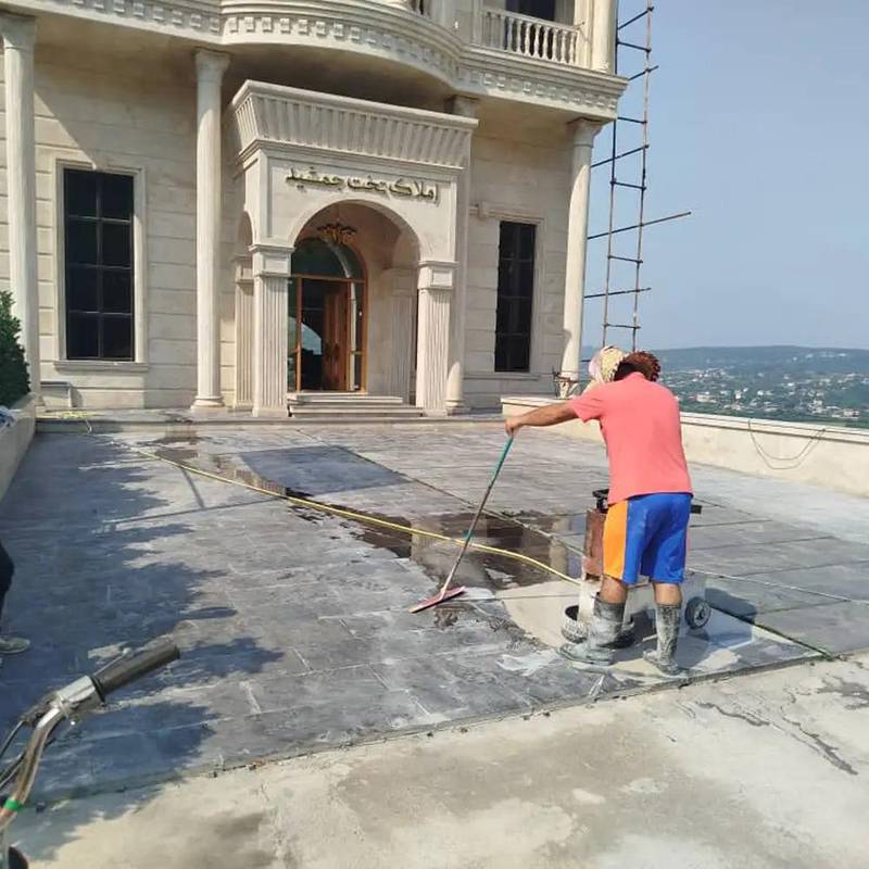 - کفسابی سنگ منزل و ساختمان برای رفع لکههای اسیدی