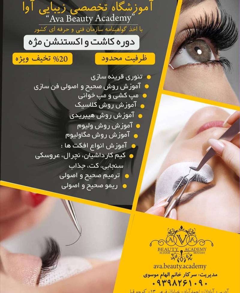 آموزش کلیه ی دوره های آرایشگری در آموزشگاه آوا در آبادان