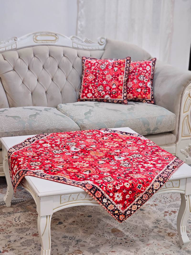 برای تکمیل دکوراسیون و ایجاد هماهنگی زیبا، کوسنهای مخملکوب هماهنگ با این رومیزیها نیز در مجموعه گالری سنتی معینی موجود است. شما میتوانید رومیزی و کوسن را به صورت ست و جداگانه سفارش دهید.