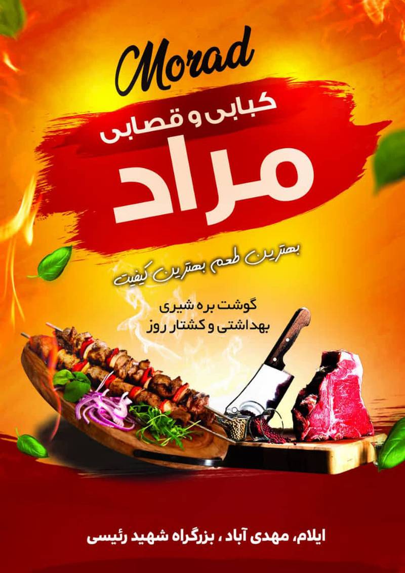 کبابی مراد در شهر ایلام، مکانی زیبا با ارائه بهترین کباب های منطقه با استفاده از گوشت های تازه و لذیذ مانند کباب گوشت و کباب دنده با همراه قصابی در همان مکان و عرضه گوشت