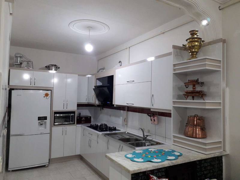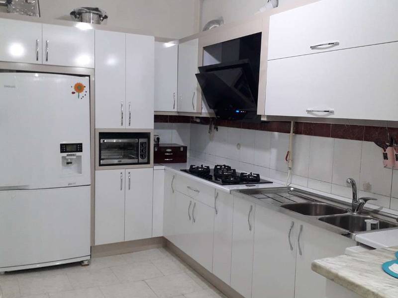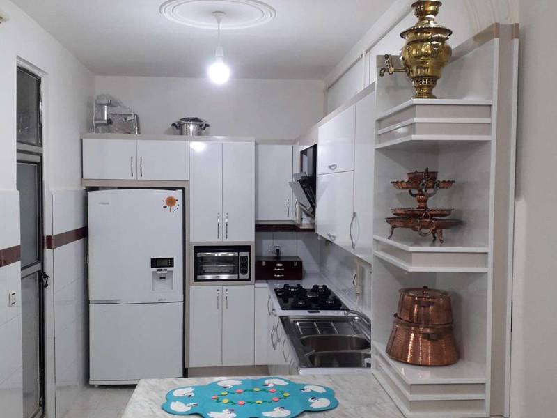 کابینت آشپزخانه ترکیبی سفید متالیک و کاپو چینو متالیک