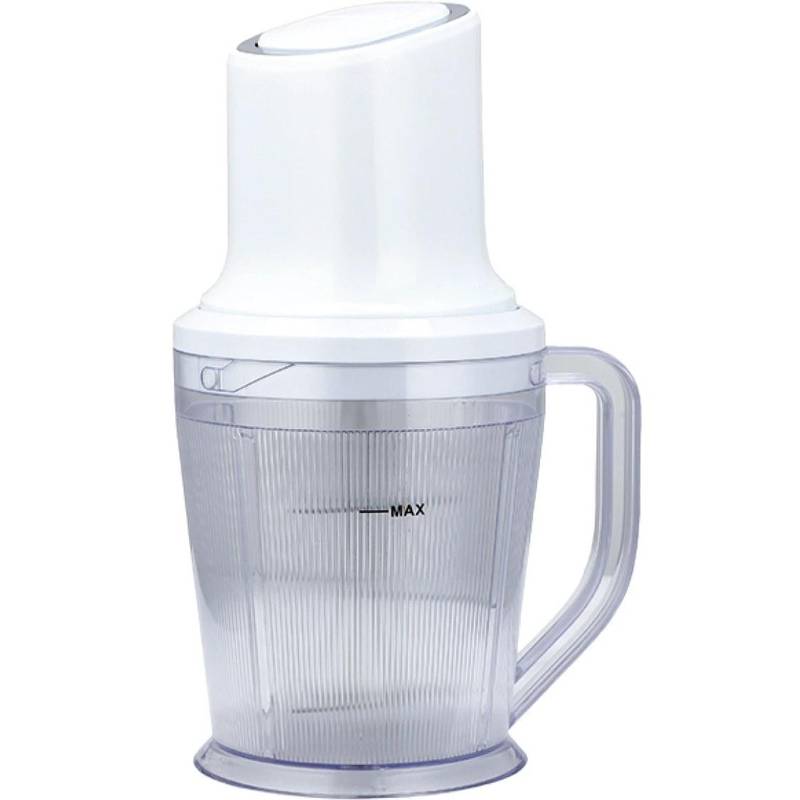 - طراحی: دستگاه خردکن دارای بدنهای شفاف (با دید کامل به داخل مخزن)، یک دسته برای حمل و نقل، و یک تیغه در داخل دستگاه برای خرد کردن مواد غذایی