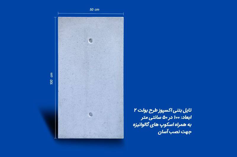 تایل بتنی اکسپوز طرح بولت ۲ انتخابی ایدهآل برای فضاهای داخلی و خارجی با طراحی مدرن و صنعتی است. این تایل با ابعاد ۱۰۰ در ۵۰ سانتیمتر پوششی وسیع و یکپارچه ایجاد میکند و اجرای سریع و راحت را ممکن میسازد.