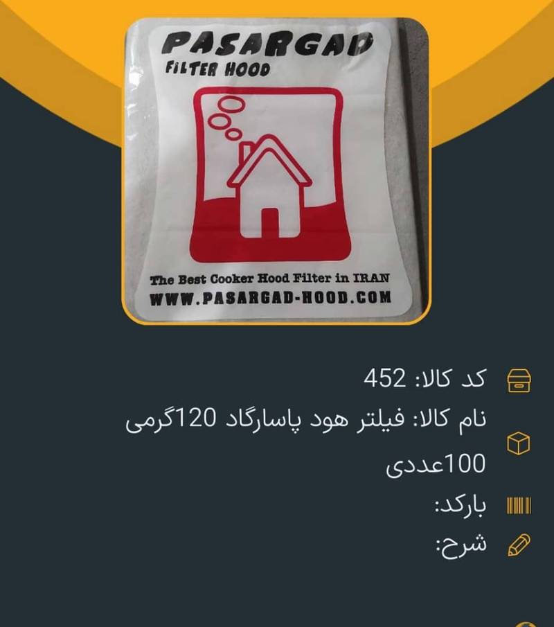 فیلتر هود پاسارگاد ۱۲۰ گرم در شهریار