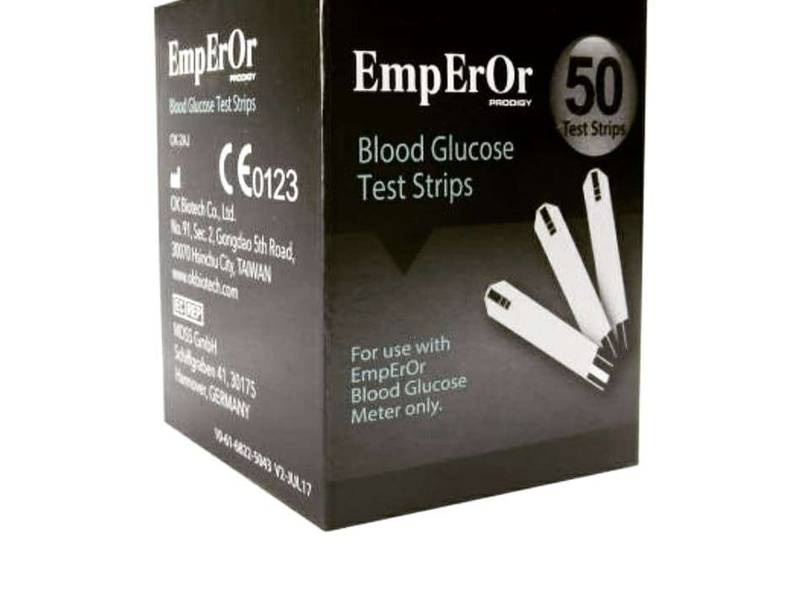 نوار تست قندخون امپرورر شامل بسته ۵۰عددی نوار بوده مناسب برای تست توسط شخص