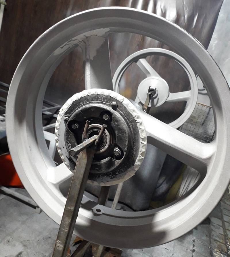بازسازی و رنگآمیزی حرفهای رینگ و قاب موتورسیکلت در هیدروگرافیک ساری اسپرت