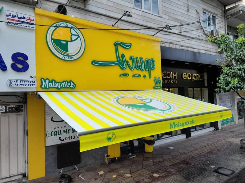 مدل : سایبان مغازه جلو از نور آفتاب وبارش باران حتی لوگو فروشگاه هم قابلیت چاپ رو سایبان