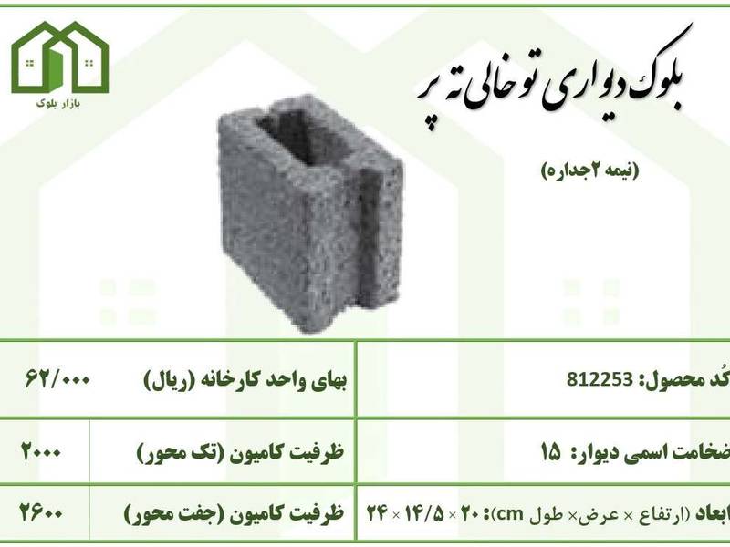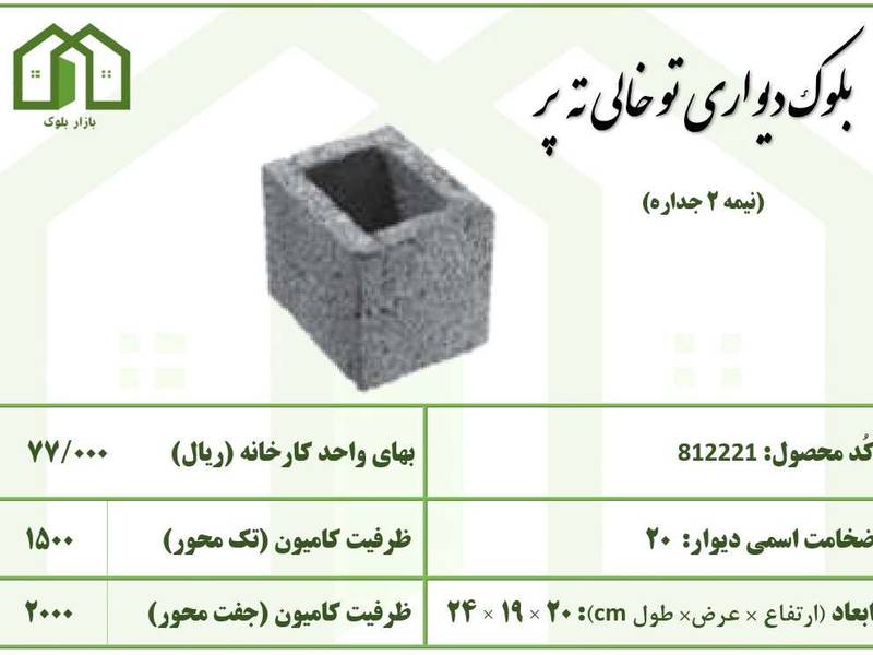 بلوک دیواری توخالی ته پر نیمه 2 جداره