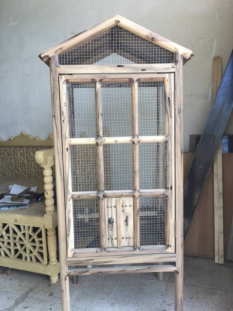 قفس کلبه ای با چوب گردو مناسب برای انواع پرنده ها