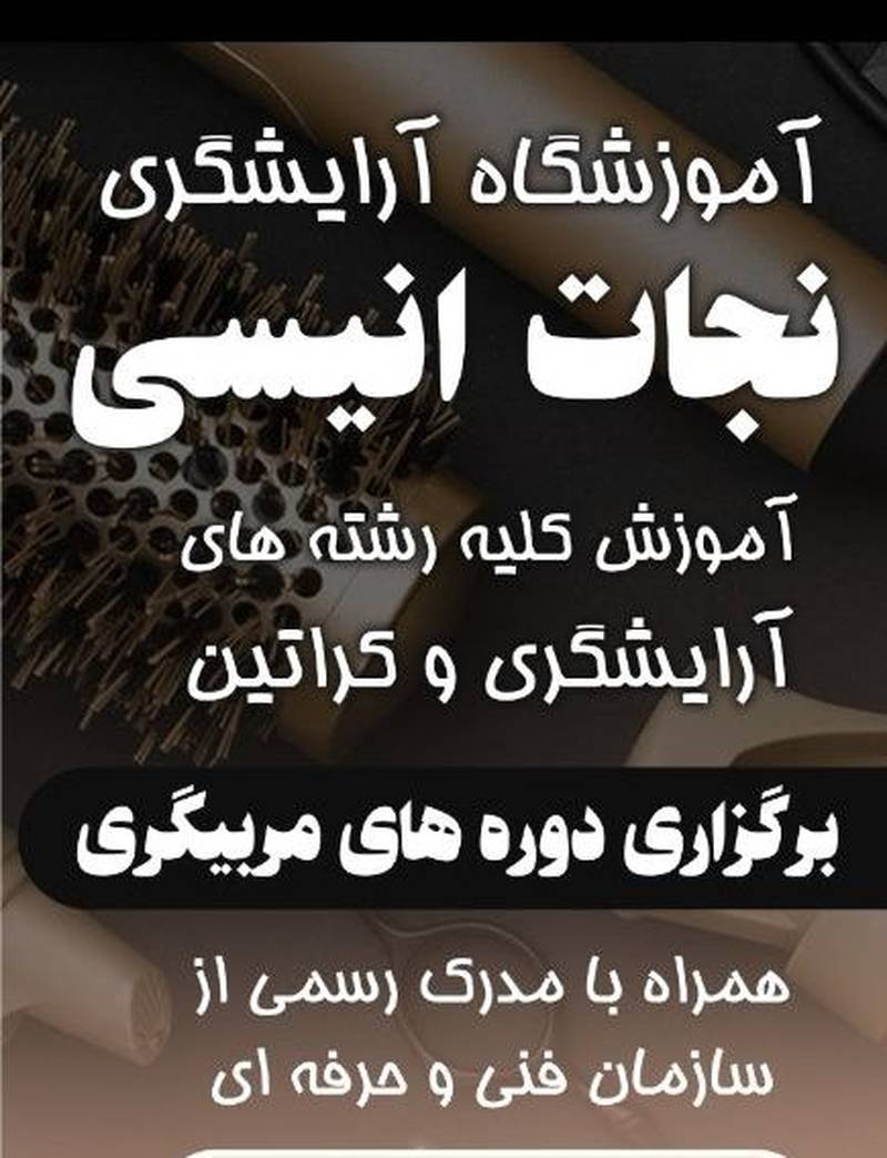آموزشگاه آرایشگری نجات انیسی آموزش کلیه رشته های آرایشگری و کراتین برگزاری دوره های مربیگری همراه با مدرک رسمی از سازمان فنی و حرفه ای