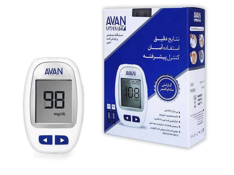 دستگاه تست قند خون آوان برای اندازه گیری غلظت گلوکز ( قند ) در خون تازه مویرگی طراحی شده است