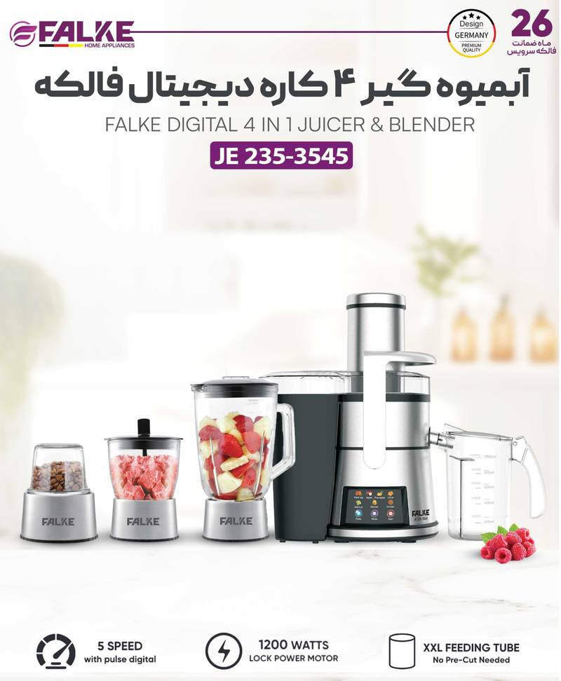این آبمیوهگیری چهارکاره با ترکیبی از قدرت، کیفیت و امکانات متنوع، انتخابی ایدهآل برای علاقهمندان به آبمیوههای طبیعی و سالم است.