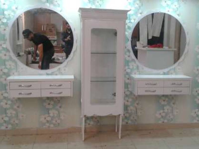 میز پیشخوان ، بوفه ، آینه و کنسول با متریال ام دی اف رنگ سفید براق با یراق الات درجه یک همگی در مصنوعات چوبی پارسیان زنجان قابل عرضه میباشد