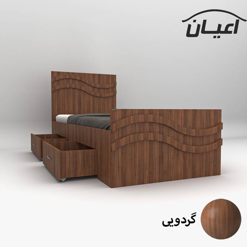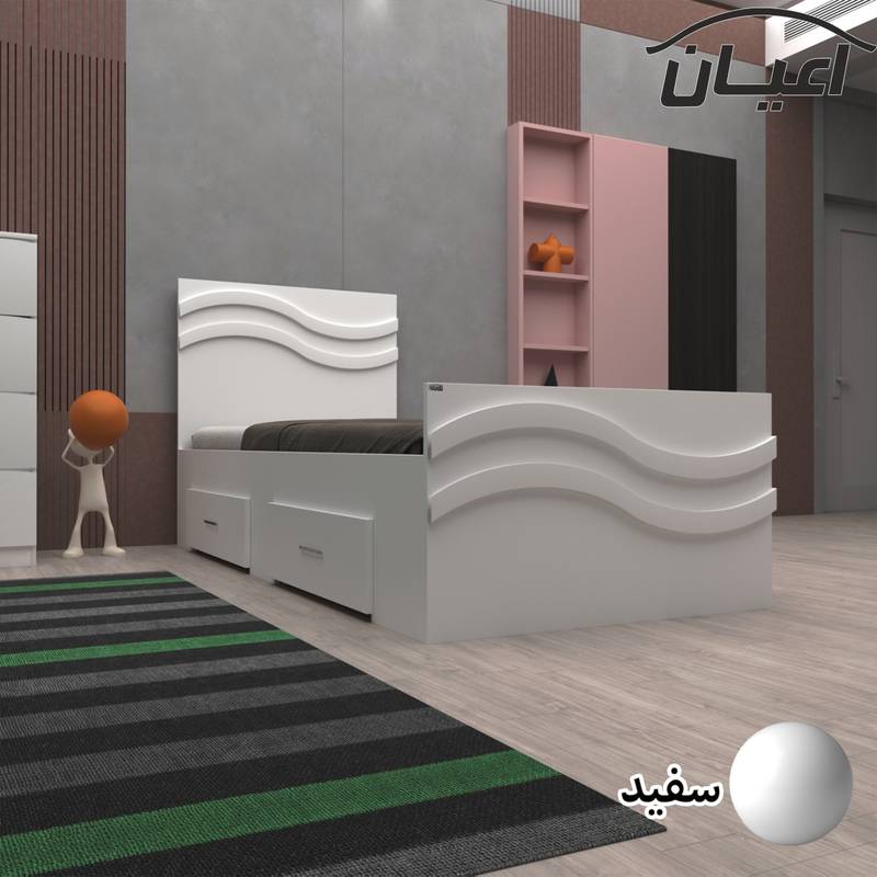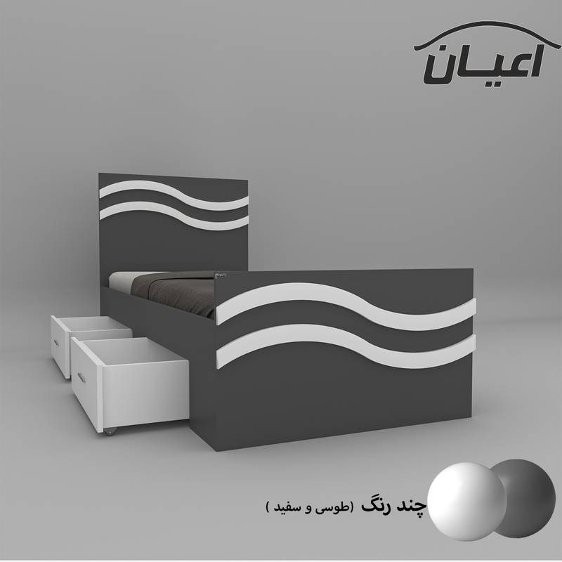 تخت خواب یک نفره اعیان-جنس نئوپان ملامینه شرکتی-کلگی بالا دارای قید سی ان سی منحنی است که به صورت دوبل کار شده-دارای دو کشو(به صورت چرخدار و قابل جابجایی) است - کالا فاقد تشک می باشد-سایز تشک مناسب 90x200سانت است-کالا به صورت مونتاژ نشده(جدا از هم) ارسال می شود - بسته بندی کالا به صورت چهار آیتمی است - جنس کفی تخت نئوپان به صورت دو تکه است-رنگ بندی کالا در آلبوم قابل مشاهده است(در رنگ های سفید/مشکی/قهوه ای/قهوه ای روشن/قهوه ای تیره (ونگه)/گردویی و چند رنگ(سفید و طوسی) تولید می شود)