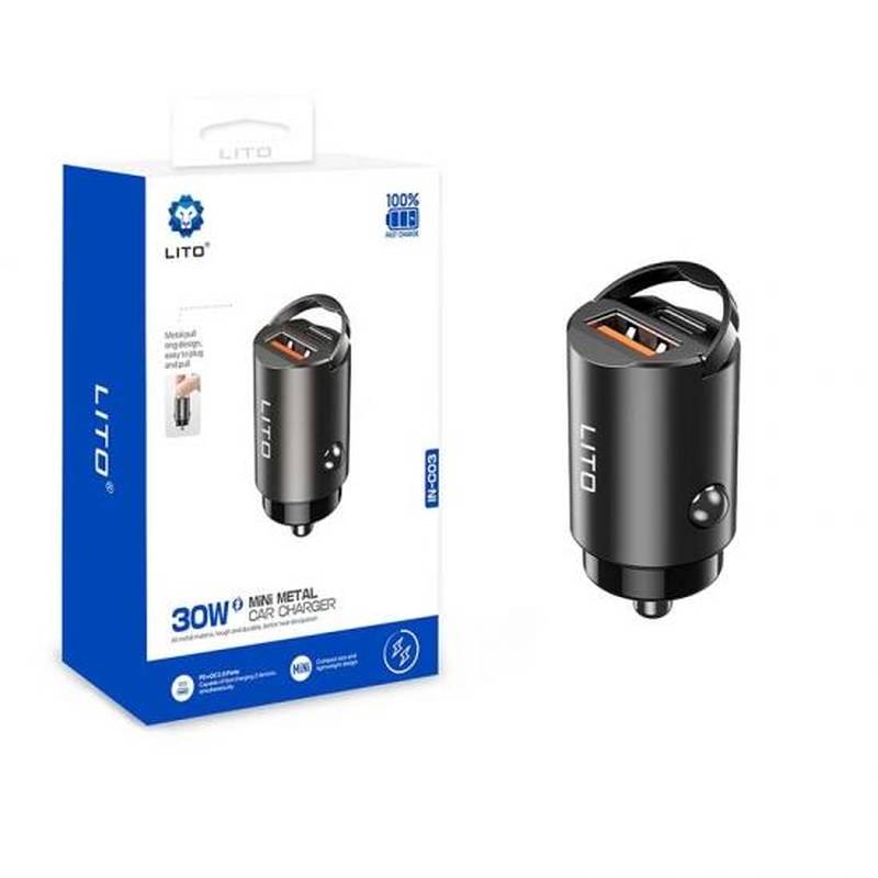 شارژر فندکی LITO LC-C03 یک شارژر قدرتمند و جمعوجور برای خودرو است که با توان خروجی ۳۰ وات، امکان شارژ سریع انواع گوشیهای هوشمند و تبلت را فراهم میکند. این شارژر دارای دو درگاه خروجی است: یک پورت USB-A با فناوری Quick Charge 3.0 و یک پورت USB-C با فناوری Power Delivery (PD 30W) که قابلیت شارژ ایمن و پرسرعت را برای اکثر دستگاههای مدرن فراهم میسازد.
